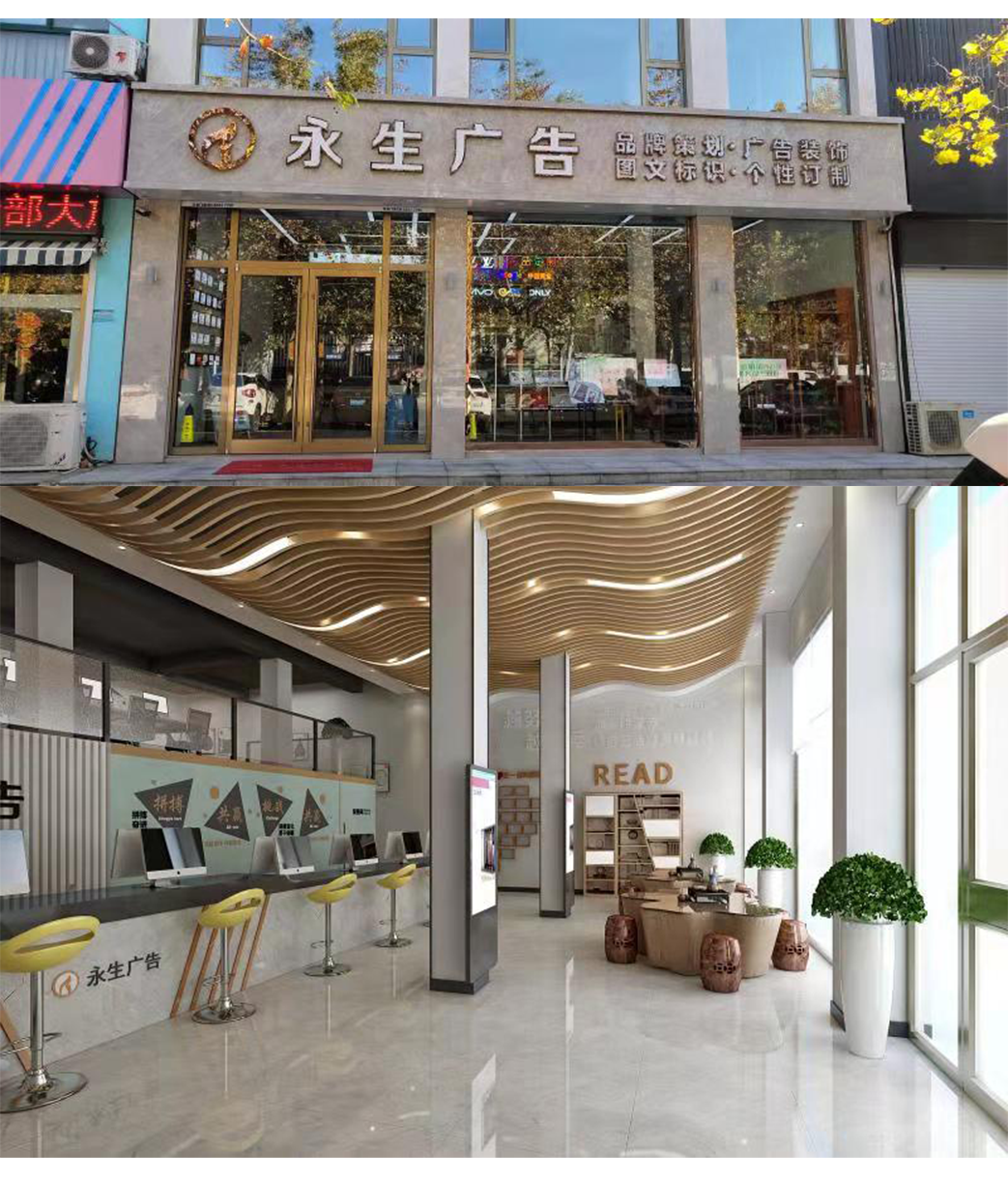 公司自有數(shù)碼沖床設(shè)備、500W光纖機(jī)、高精度大幅面噴繪機(jī)、寫真機(jī)、UV機(jī)、多種大小型雕刻機(jī)、吸塑機(jī)、全自動(dòng)圍字機(jī)、自動(dòng)開槽機(jī)、激光焊接機(jī)、拋光機(jī)等生產(chǎn)加工設(shè)備,擁有完善的設(shè)計(jì)團(tuán)隊(duì)、技術(shù)團(tuán)隊(duì)、施工團(tuán)隊(duì)、售后團(tuán)隊(duì),可為廣大客戶提供室內(nèi)裝修、店招門頭、精神堡壘、黨建標(biāo)識、標(biāo)識標(biāo)牌、宣傳欄、LED顯示屏、警示標(biāo)識、精品字、證卡胸牌、證書獎(jiǎng)杯、燈箱、桌牌、定制禮品、展具、噴印等多種專業(yè)廣告服務(wù)...